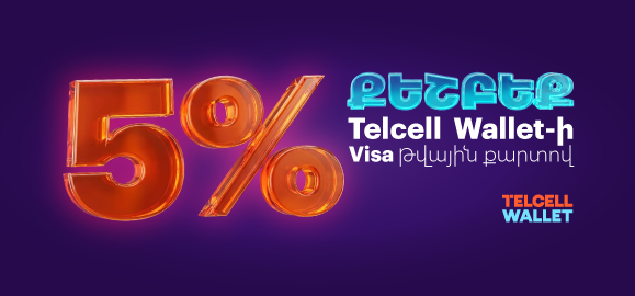 - Ակցիայից կարելի է օգտվել միայն Telcell Wallet-ում բացված Visa թվային քարտով։